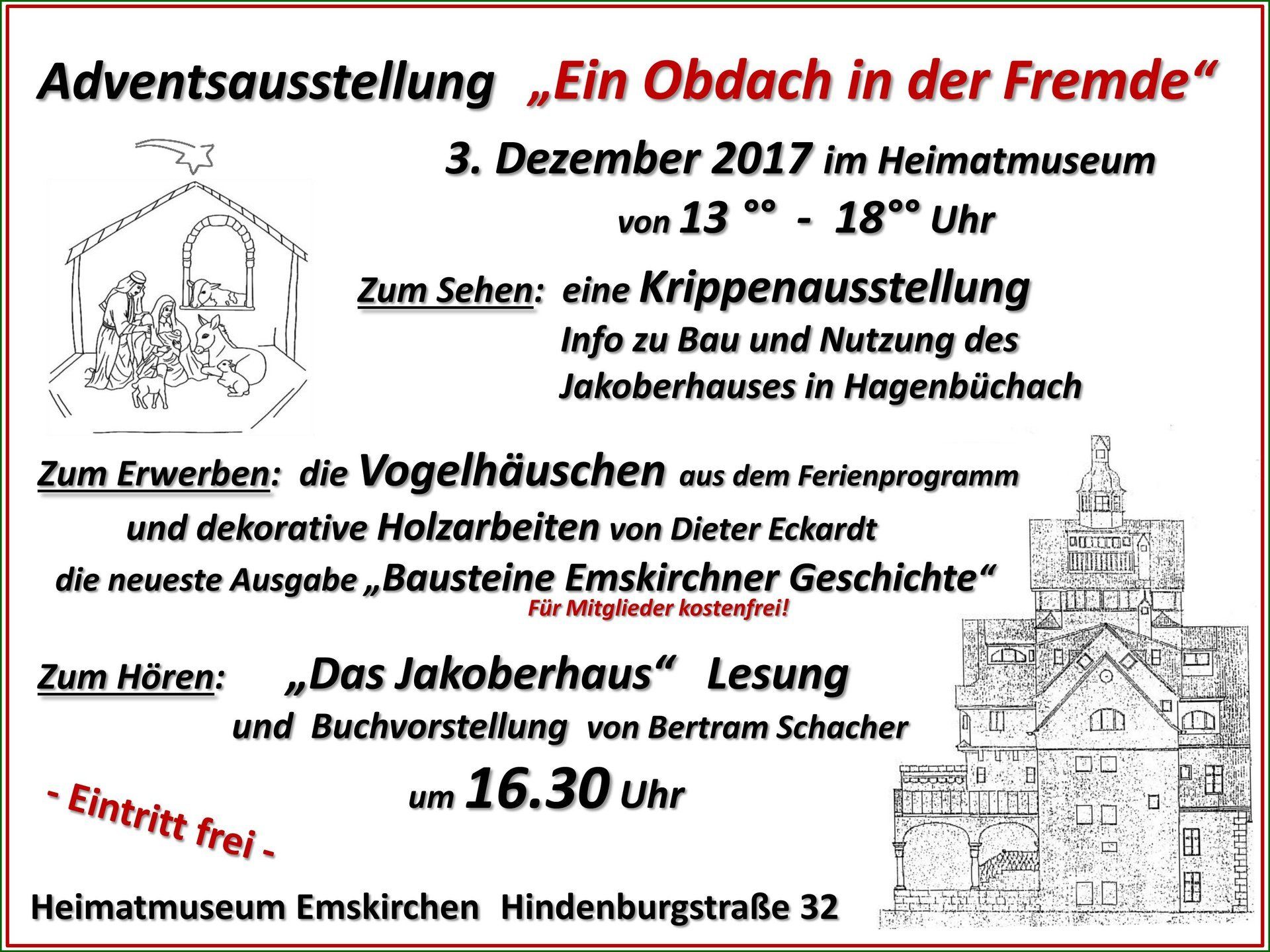3. Dezember 2017 im Heimatmuseum - "Das Jakoberhaus" Lesung und Buchvorstellung