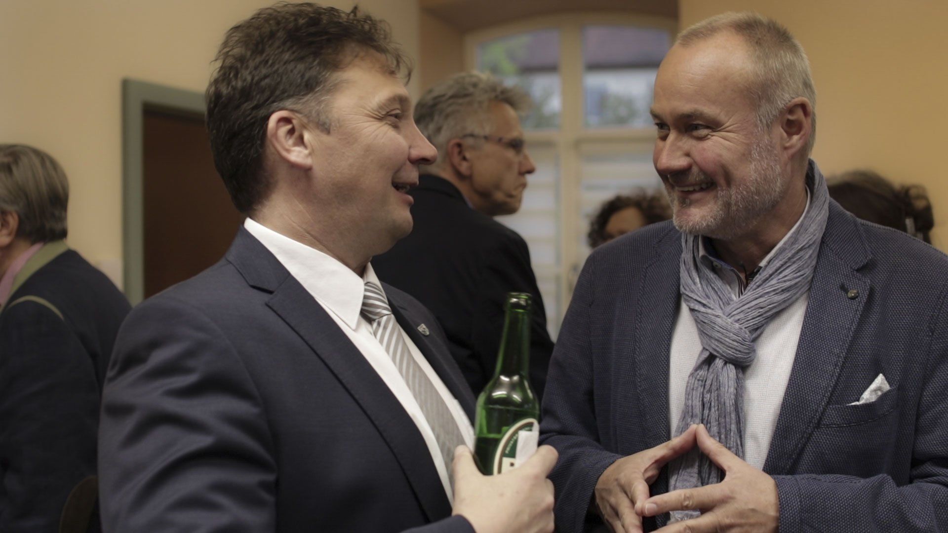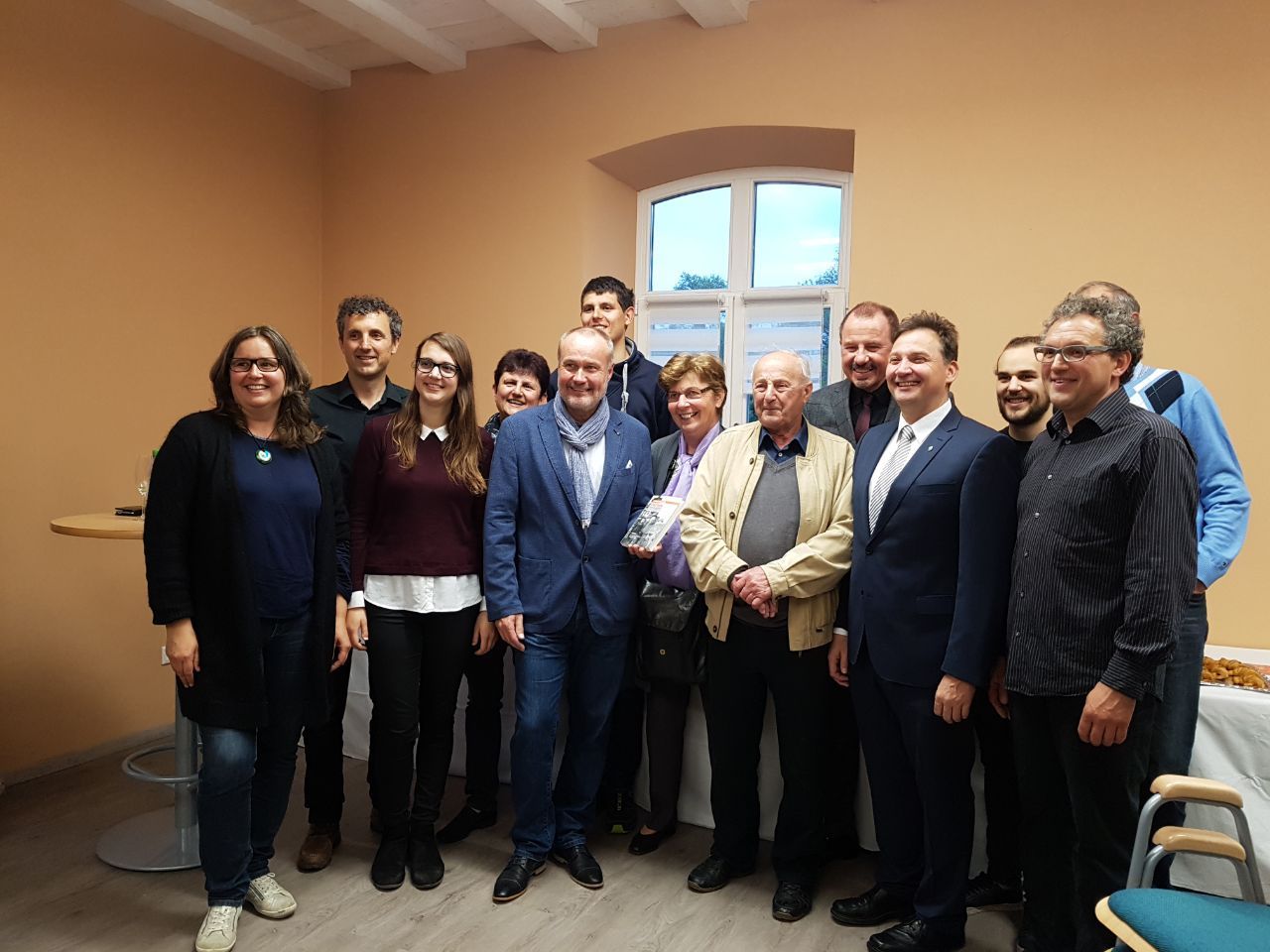 am 26.April 2017 im Bahnhof von Hagenbüchach. Eigens aus Kärnten war der Zeitzeuge Franz Rehsmann mit Familienangehörigen angereist. Für den festlichen musikalischen Rahmen sorgten Professor Marcos Fregnani-Martins und Carmen Fuentes Gimeno von den Bamberger Symphonikern.